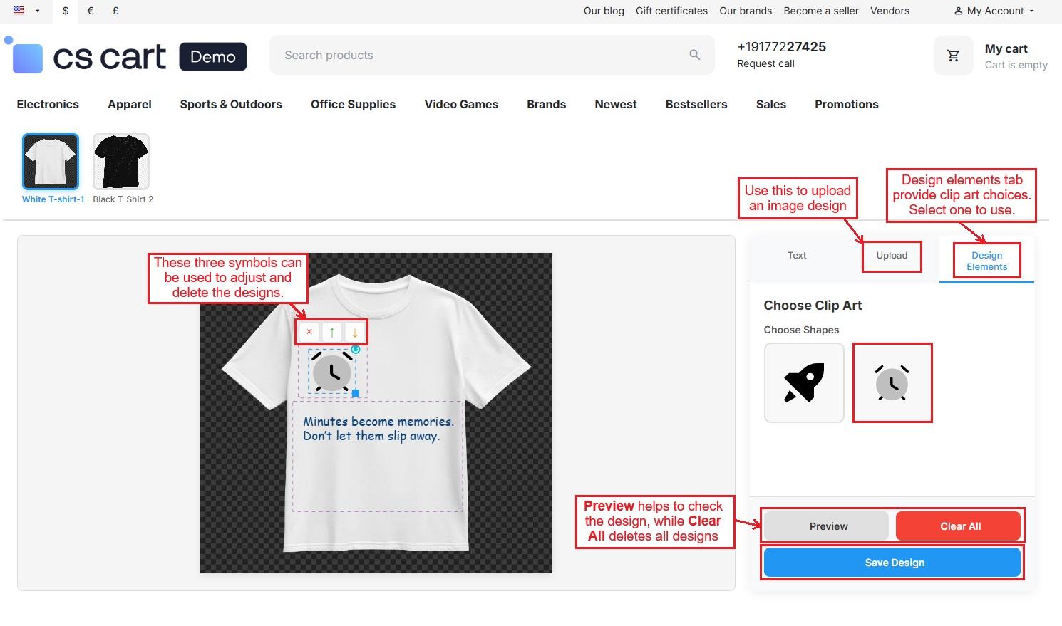 - Vendor-Specific Clip Art: The admin adds clip art for particular vendors. Those clip art appear only on that vendor’s products.