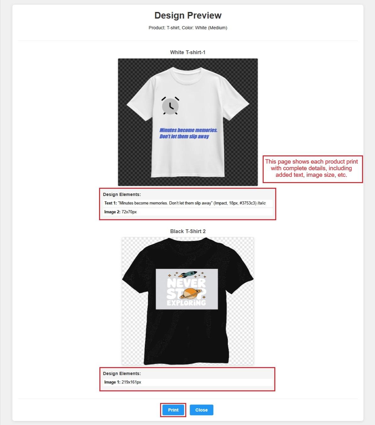 - Design Preview and Edit: Preview designs before checkout. Edit or re-create designs from the cart or product page.