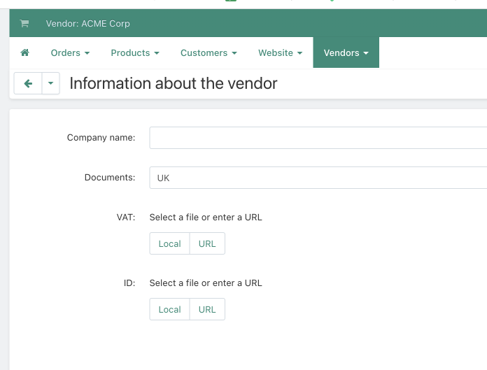 In the vendor card in the admin panel, administrators always see the documents received from the vendor, which greatly simplifies the workflow.