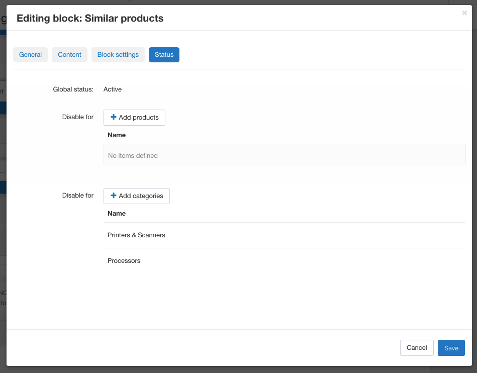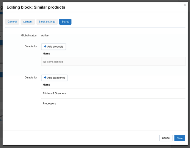 Currently, if you want to add/hide a block or tab for products from a specific category, you need to either go to each product and enable the block/tab for the product, or specify all the required products in the block settings.