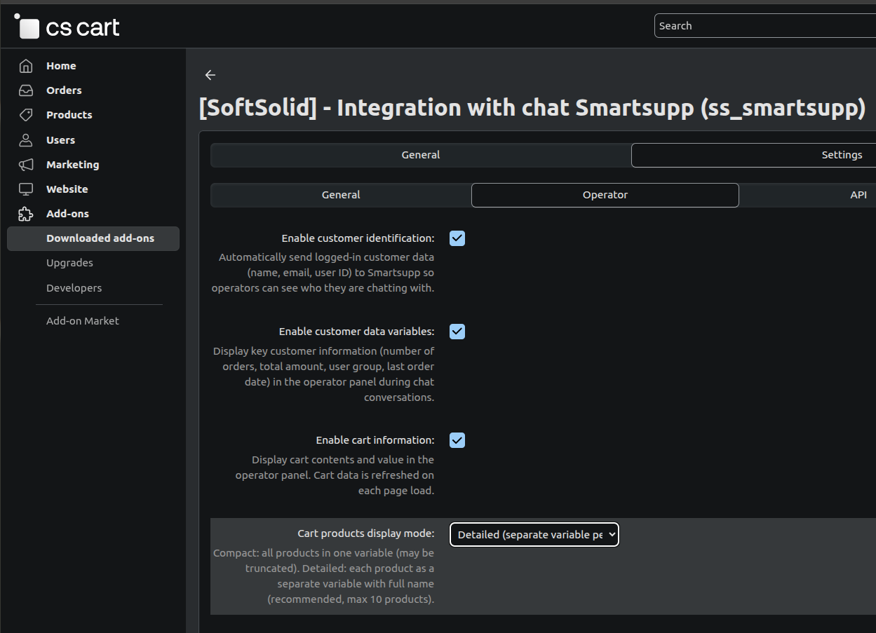 Our addon to CS-Cart and Multi-Vendor for integration with SmartSupp has three new functionalities: