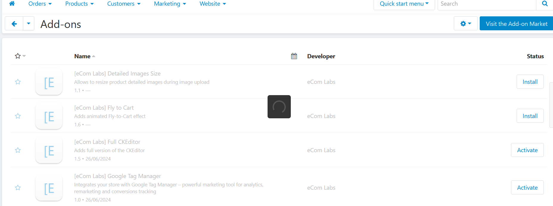 I also tried to uninstall the add-ons, even if I did no changes in the last period, definitely something is not working good because I get blocked at the loading screen (please see screenshot). Loading the page show that the add on is uninstalled, I will try to uninstall them all.