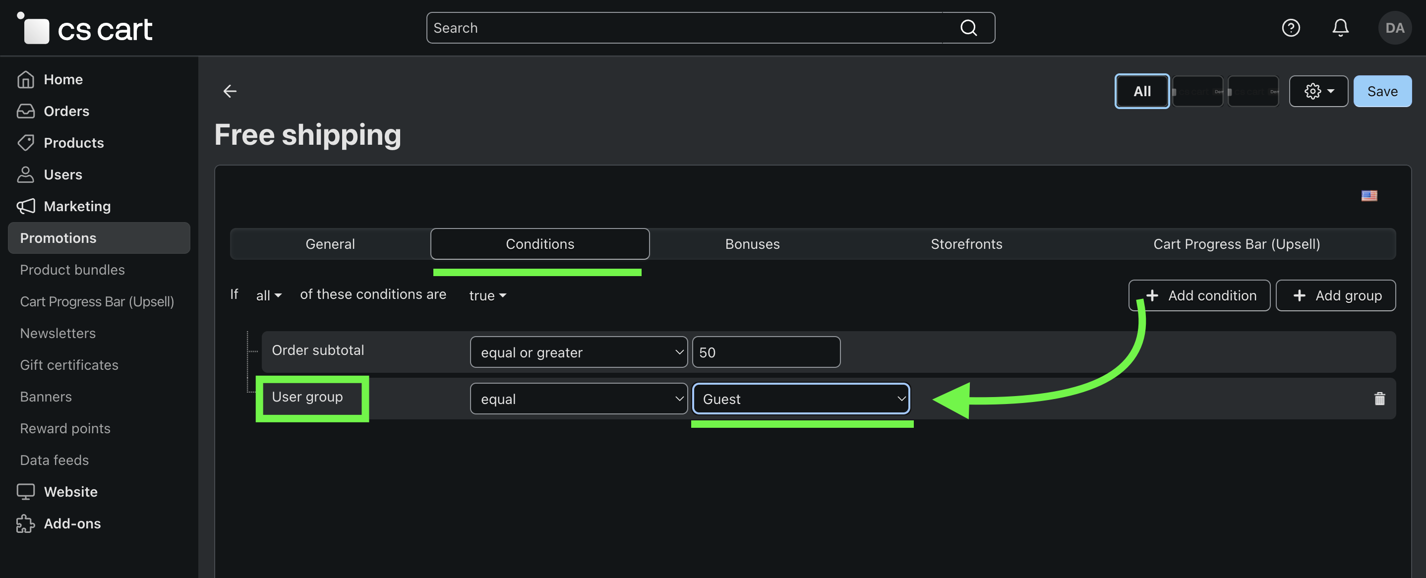 This allows you to display the progress bar and bonuses only to customers who match specific address rules.