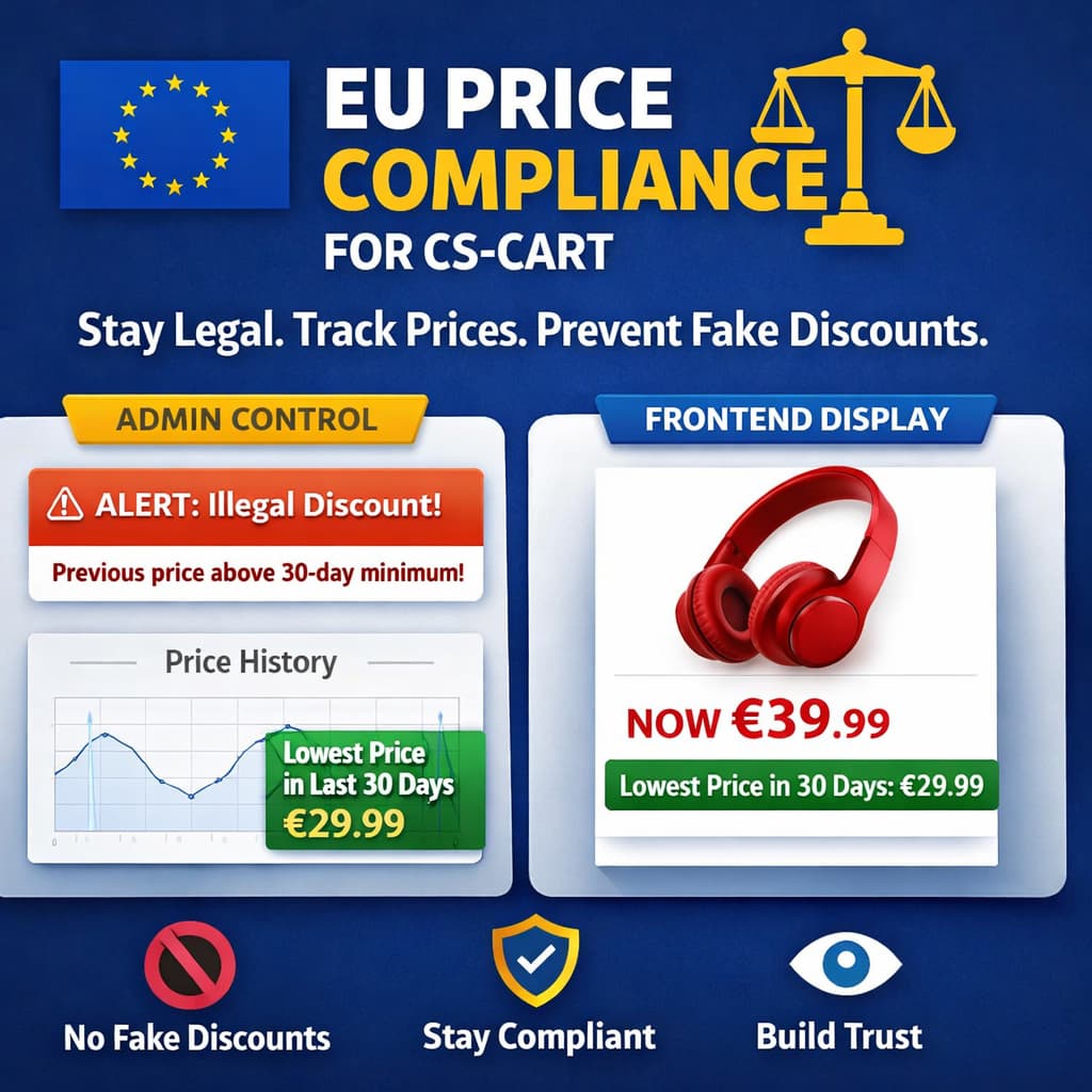 A new and very important add-on has been published: CS-Cart EU Omnibus Price Compliance addon